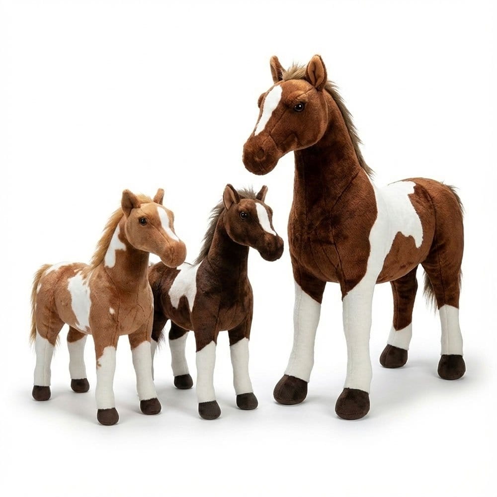 This stuffed horse features a realistic design and attractive brown and white colors. Made from soft, high-quality materials with detailed fur and tail, it makes a perfect gift for children to stimulate their imagination and simulate horseback riding adventures in their rooms.