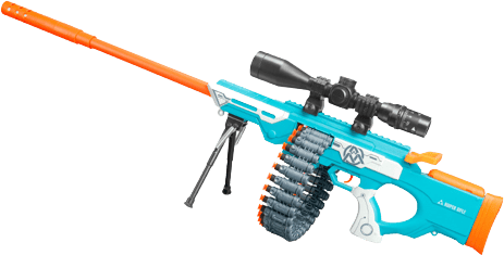 لعبة تصويب ممتعة تأتي على شكل بندقية قنص مزودة بمنظار وقاعدة تثبيت، وتعمل بإطلاق طلقات إسفنجية عبر حزام ذخيرة دائري. تصميمها يجمع بين الواقعية والألوان الجذابة، وتُحفّز التركيز والتفاعل الحركي لدى الأطفال. مناسبة للعب الجماعي وتُقدّم تجربة مليئة بالحركة والتشويق.