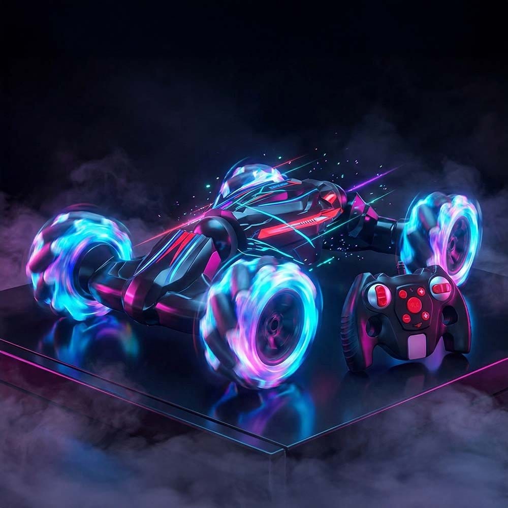 سيارة  بهلوانية تعمل بالتحكم عن بعد، مصممة للقيام بحركات ملتوية ومثيرة، وهي مثالية للأطفال من عمر 6 سنوات فما فوق لتعزيز الوعي المكاني والمهارات الحركية الدقيقة في اللعب الخارجي.