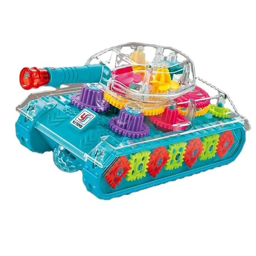 دبابة تروس تعليمية شفافة بأضواء وأصوات، تكشف عن عمل التروس الميكانيكية الملونة، تجمع بين متعة الأكشن والتعلم الميكانيكي للأطفال.