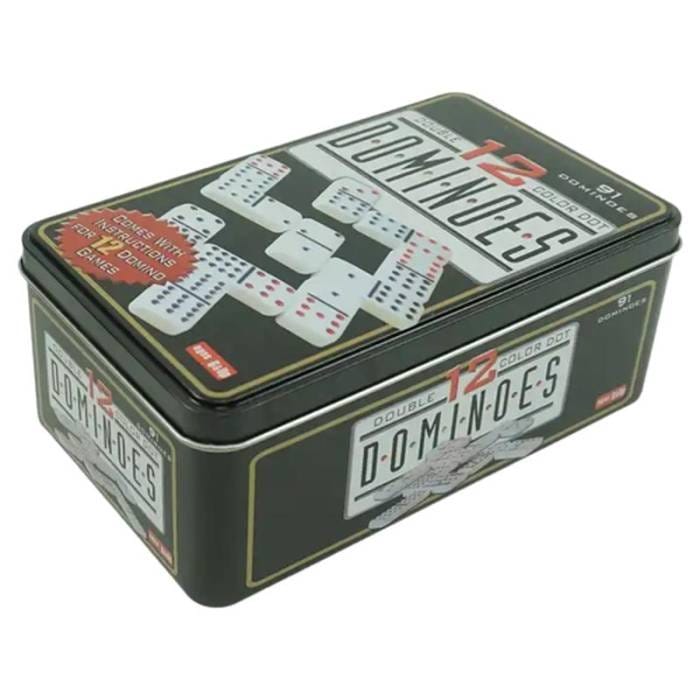 الشرح هذه اللعبة هي مجموعة دومينو، وهي مصممة لتوفير تجربة لعب ممتعة وتفاعلية للأطفال والكبار على حدٍ سواء. تحتوي المجموعة على 91 قطعة دومينو مميزة بنقاط ملونة تمثل الأرقام من 0 إلى 12، مما يتيح تنوعًا واسعًا في طرق اللعب. تأتي القطع داخل علبة معدنية أنيقة للحفظ والتنظيم، بالإضافة إلى حامل بلاستيكي لتسهيل ترتيب القطع أثناء اللعب. تساعد هذه اللعبة الأطفال على تطوير مهارات العد، التعرف على الألوان، والتفكير الاستراتيجي بطريقة مسلية. إنها مثالية للعب الجماعي وتعزز التواصل والتعاون بين اللاعبين.