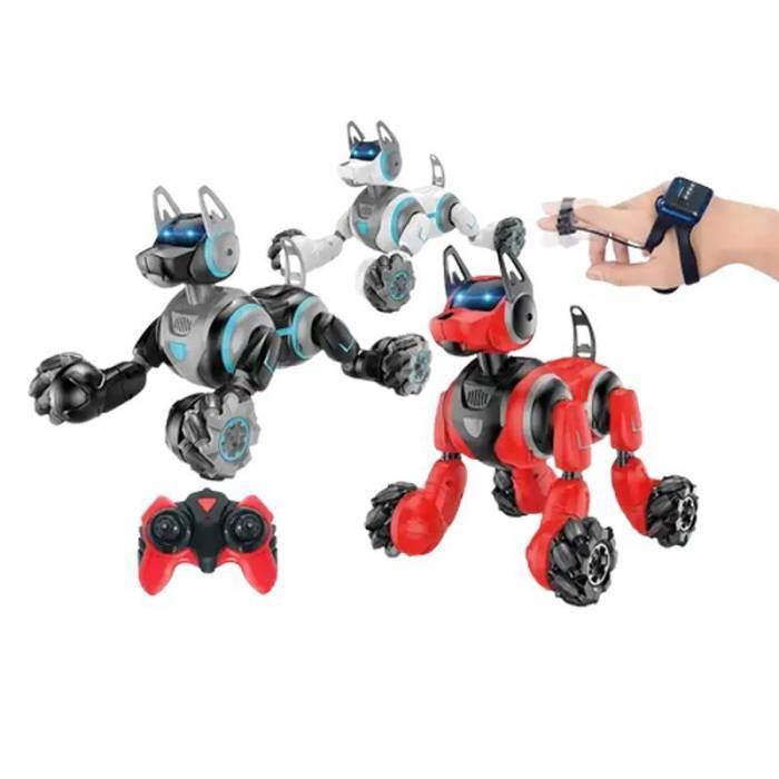 المنتج عبارة عن كلب آلي يتميز بقدرته على الحركة والتحول، ويُتحكم فيه عن طريق جهاز تحكم تقليدي أو سوار يد.